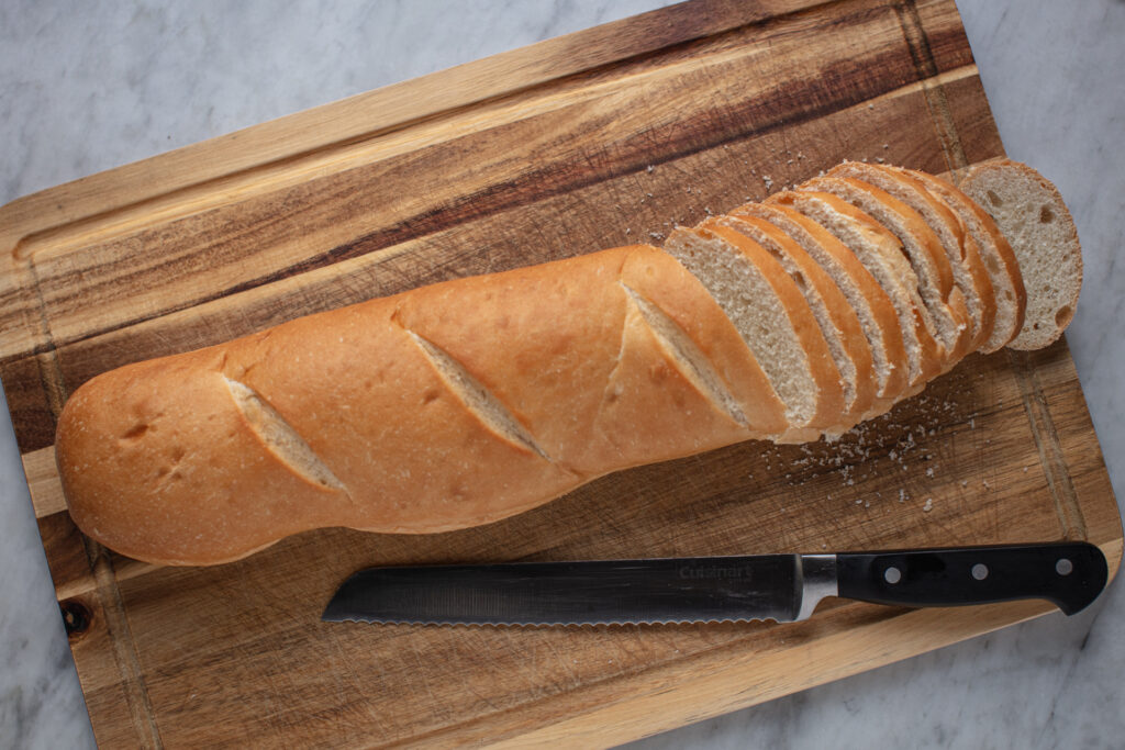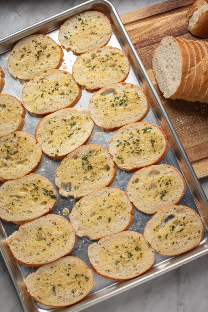 For this recipe, it’s important to buy a brand of French bread that doesn’t have large air pockets. I have found that store brands (such as the Marketplace option from Walmart) tend to have smaller air pockets. While you can absolutely buy pre-sliced French bread, I personally prefer to buy a regular loaf and slice it myself. Call me extra, but I like the bread to be cut at an angle. It’s just more elegant.