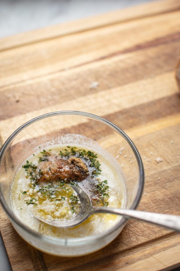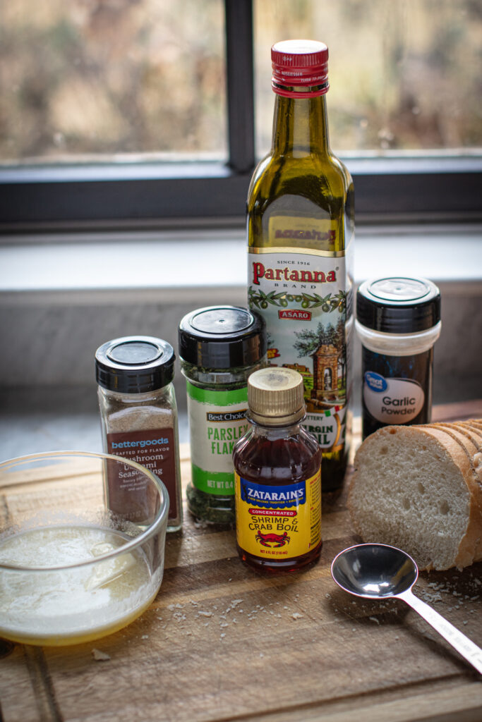 - In a small bowl, mix the melted butter, olive oil, parsley, garlic powder, umami seasoning, and Zatarain’s Concentrated Shrimp & Crab Boil (liquid).