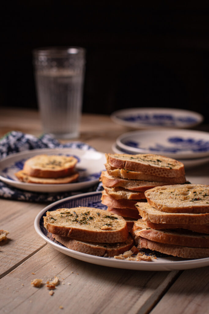 Allow the crostini to cool completely before storing in a non-airtight container. My personal preference is to leave it on a cutting board covered in a thin tea towel. This helps it retain that signature crunch.